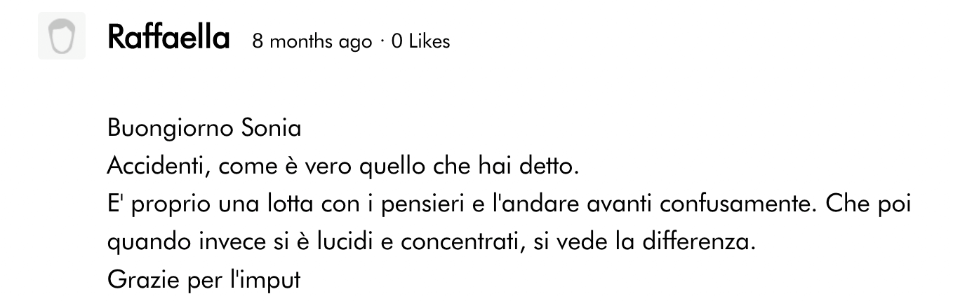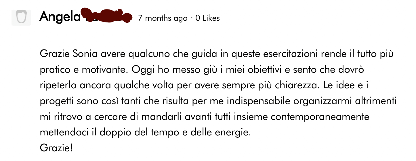 Non solo il mio lavoro da donna che lavora da casa per conto proprio è notevolmente migliorato ma, soprattutto, ho imparato ad avere rapporti più, sani, mettere confini più delineati, tenermi in forma con costanza (leggi-> dimagrire), studiare e migliorare ogni giorno di più.