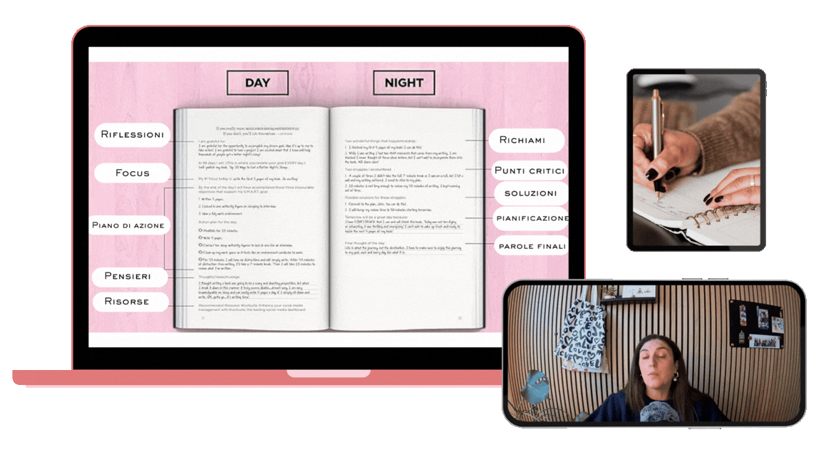 Impari tutte le pratiche: silenzio, movimento, journaling, visualizzazione, lettura, pianificazione, gratitudine, affermazioni. Cosa sono, perché funzionano, come farle nel modo giusto. Alla fine sai esattamente cosa puoi inserire nella tua routine.